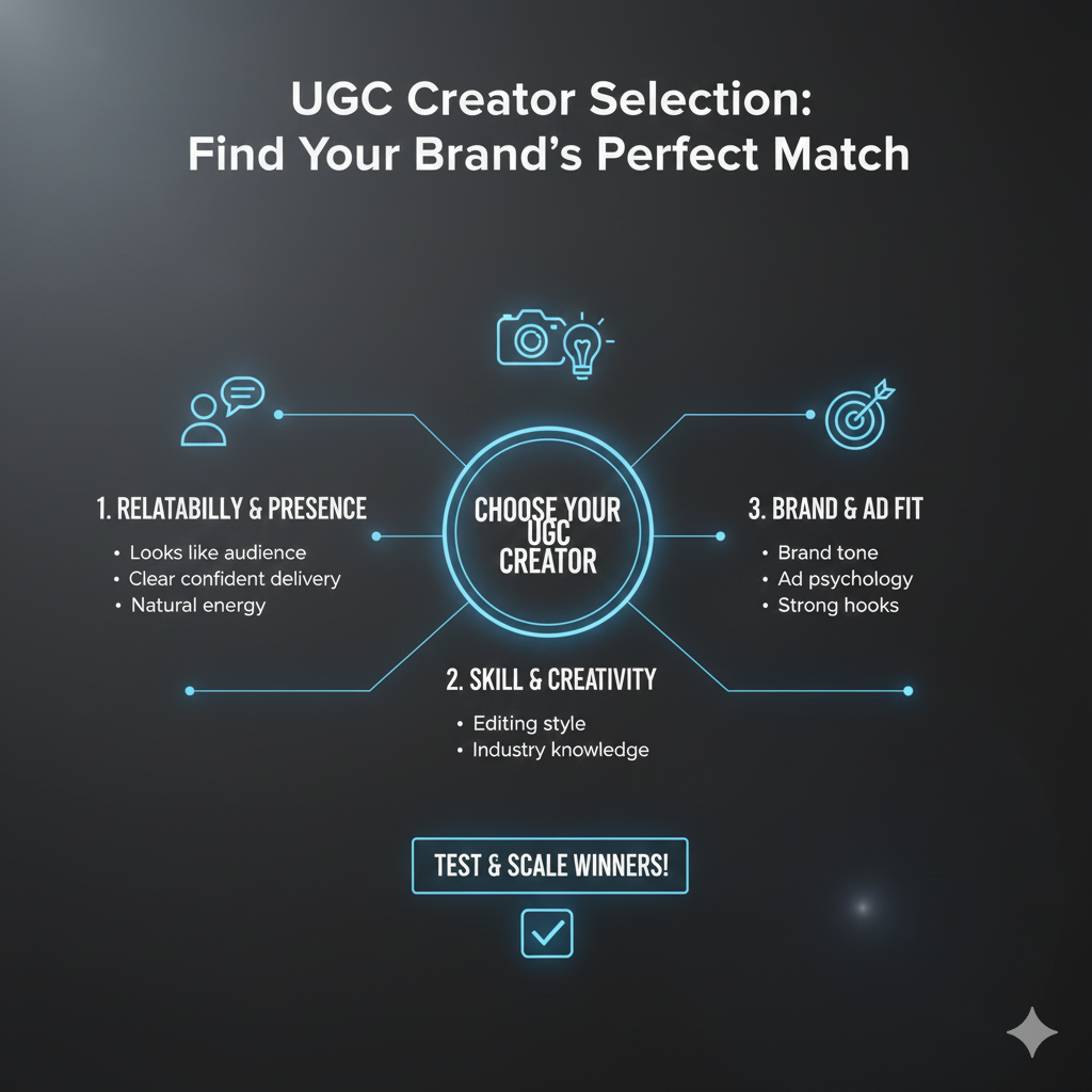 Choosing the right UGC creator isn’t about followers — it’s about skill, relatability, industry knowledge, and ad psychology.